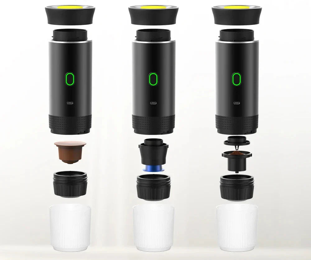 Diese stilvolle, tragbare, elektrische, kabellose Espressomaschine ist Ihr ultimativer Kaffeebegleiter und eignet sich perfekt für Reisen im Auto, zu Hause oder für abenteuerliche Campingausflüge. Diese vielseitige 3-in-1-Maschine wurde entwickelt, um Ihnen Ihren Lieblingsespresso zu liefern. Sie können gemahlenen Kaffee oder kompatible Kapseln verwenden, um den Geschmack eines jeden Kaffeeliebhabers zu treffen.
